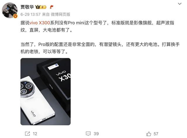 数码博主@贾敬华爆料称,vivo X300系列将取消Pro mini型号,由X300承担起小屏旗舰的重任,而且上一代小屏旗舰存在的短板得以补齐,新机潜望镜头、大电池、超声波指纹全都有。