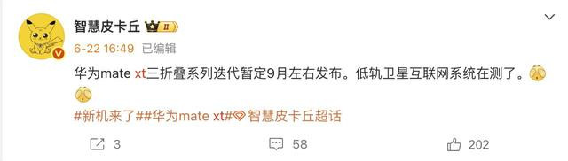 另一位数码博主@智慧皮卡丘则透露,Mate XT 2将与上一代产品相同,暂定9月前后发布,目前正在测试低轨卫星互联网系统。Mate XT系列是华为手机产品线定位最高、价格最贵的机型,对于追求高端、超大屏体验的消费者而言,目前仍是唯一的选择。