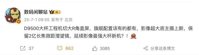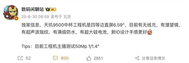 至于Pro版本,@数码闲聊站透露其工程机采用大R角直屏,该有的配置全部都有,影像超大底主摄上新,保留2亿像素潜望长焦。